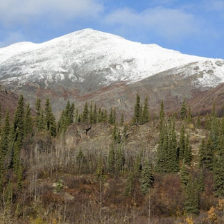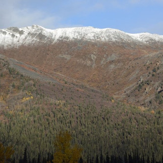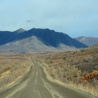 Took the obligatory picture before we start the Dempster going across the blue bridge. We always like to come onto the Dempster in the morning and by the pictures you can see why. If it is going to be even a partly sunny day and snow on the peaks of the Tombstone mountains it is just gorgeous.