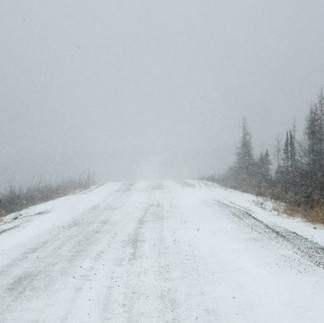 As you can see the ptarmigan are in their full winter plumage. Got to the Arctic Circle where you can see from the pics there was now snow when days earlier there was none. We could see a snow storm bearing down on us and miles out of Eagle Plains it caught up to us. We had to wait for two semi's to fill up there gas tanks so we took the opportunity to go to the restaurant and grab second breakfast. Talked to a gent who lived through rolling his 4x4 6-7 times yesterday. We saw his rig and it was totaled, there was another car there also. Roads were bad so I didn’t stop to take pics. He was ok bruised and banged up but like he said it could have been worse and he was lucky that a trucker came by shortly afterwards or he might have frozen to death out there.